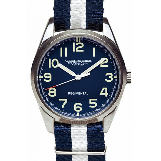 - AG SPALDING & BROS, Regimental bleu et blanc, montée sur un bracelet nato en nylon un de mes coups de coeur ( et accessible) prix 185 euros