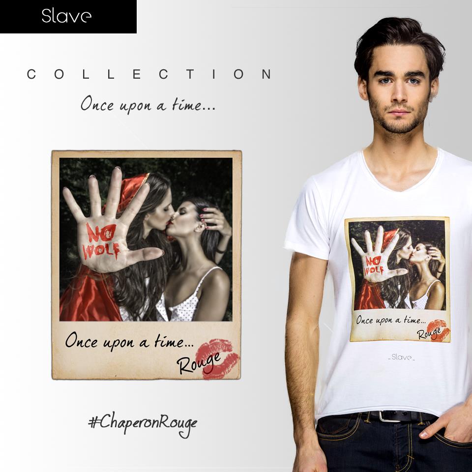 Pour sa première collection, Slave tape fort, très fort en revisitant les contes de fées traditionnels et aseptisés en leur donnant une touche rock’n’roll et en dévergondant quelque peu ces héroïnes, qui sont souvent l’archétype de la fille modèle! Vous allez voir que le petit chaperon rouge ne va pas dans le bois pour aller voir sa grand-mère 😉