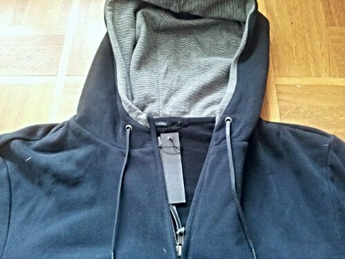 J’ai craqué pour ce cardigan à capuche, 100 % coton et de couleur bleu marine, l’intérieur de la capuche a un imprimé rayé, il est muni de 2 poche sur le devant. j’ai particulièrement aimé les petits détails en cuir, le logo sur la manche gauche, et sur le bord des poches. Ce cardigan est très agréable à porter, confortable. Il accompagnera un look sportswear chic , vous pourrez le porter avec un t-shirt ou un polo, un jean denim ou regular et une paire de sneakers.