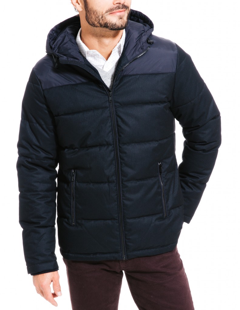 - Blouson bi-matière à capuche – prix 129,95 euros