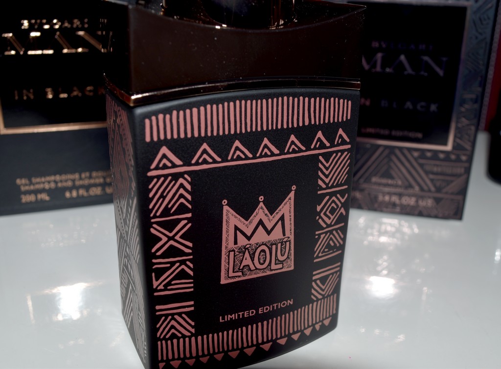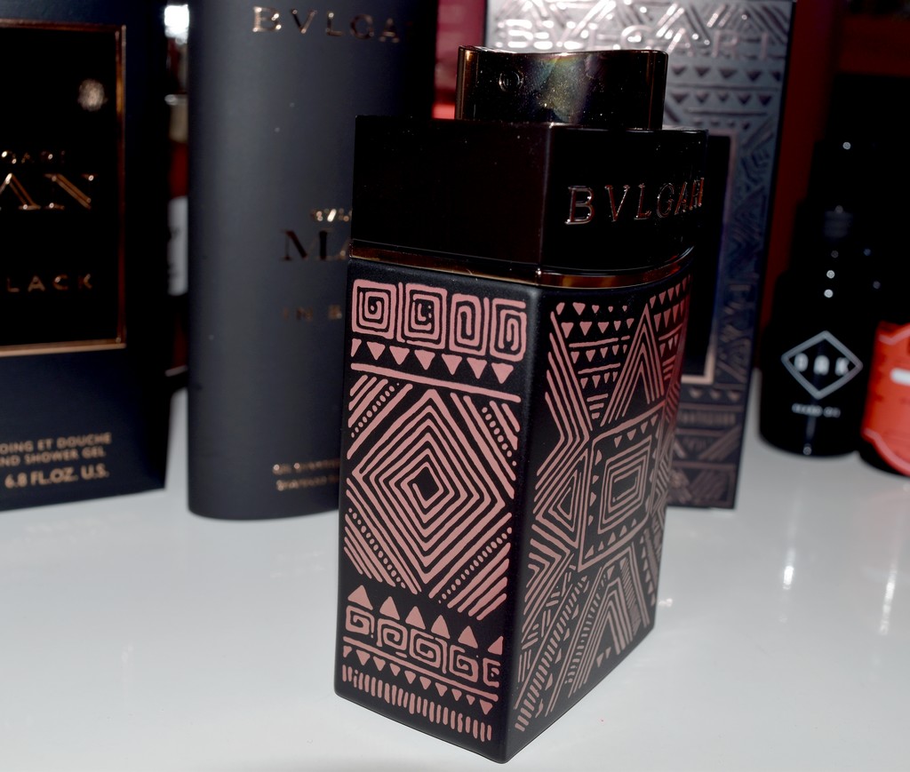 Man in Black Essence a été élaboré par Alberto Morillas en 2017. Pour cette édition limitée, Bulgari a fait appel à Laolou Senbanjo, un artiste nigérian. Pour l’occasion, le flacon de Man In Black se voit orné de motifs tribaux.