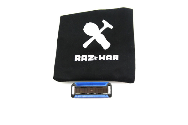 Ce kit comprend un manche de rasoir, une recharge de 4 têtes, un pochon de voyage